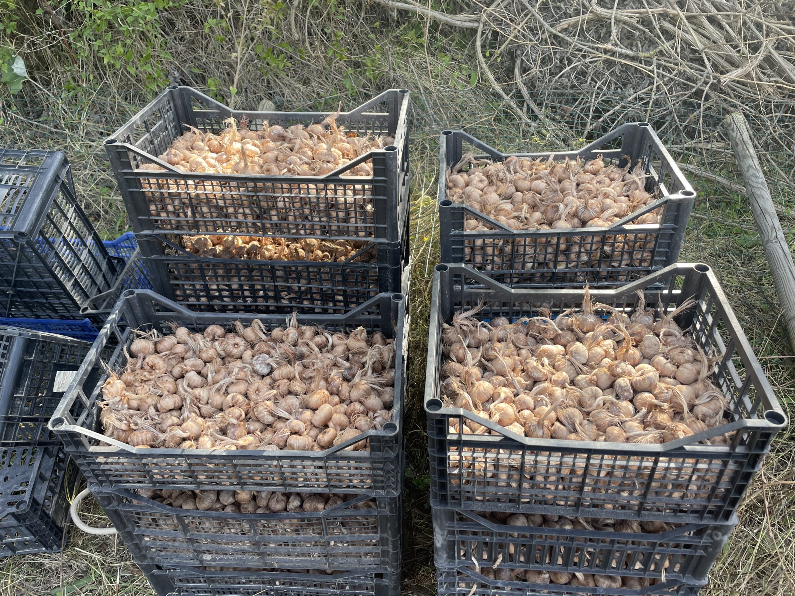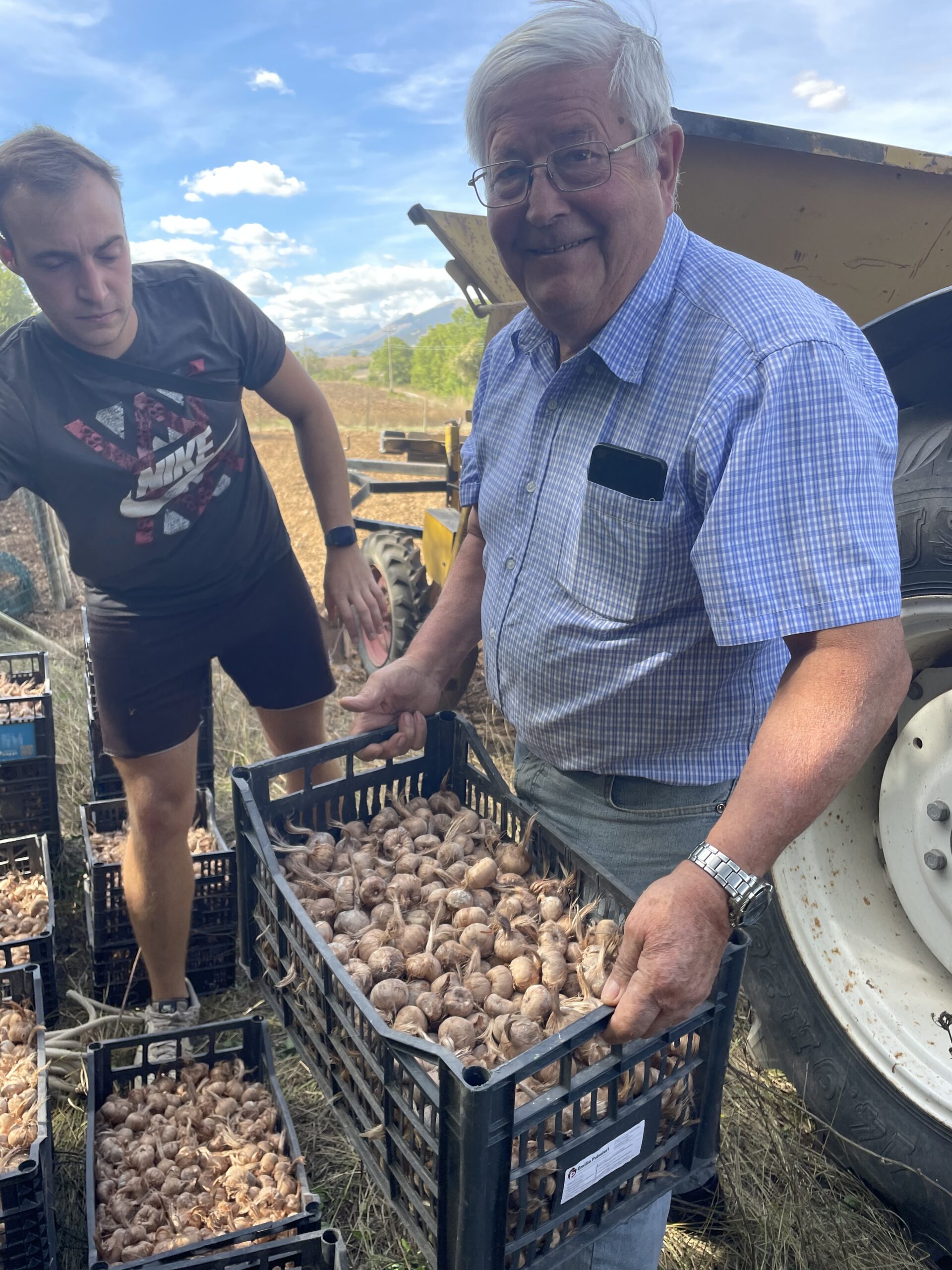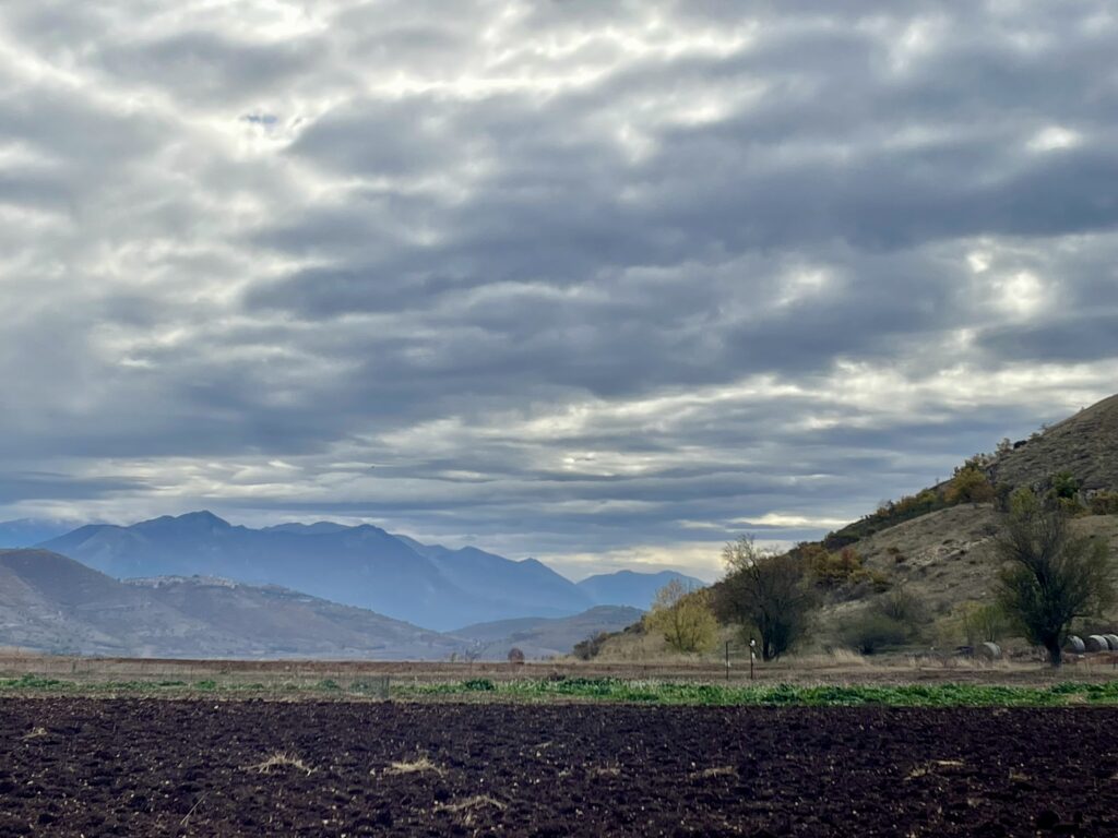 In augustus 2025 ging ik praten met Dina van de Cooperativa Altopiano di Navelli, en mocht ik samen met Valentino het veld op. Tot mijn grote verbazing waren de saffraanvelden relatief klein, en zorgvuldig omheind. Dat is noodzakelijk, want everzwijnen zijn dol op de knollen van de Crocus sativus, en richten anders ravages aan. Ik zag hoe de krokusknollen massaal in kistjes werden aangevoerd en netjes op regelmatige afstand van elkaar werden aangeplant. In Navelli blijven de knollen niet jaar na jaar in de grond zitten zoals dat in vele streken wel het geval is. Ik begreep dat daardoor de manier van werken nog arbeidsintensiever is dan in andere regio’s, maar die inspanning loont.